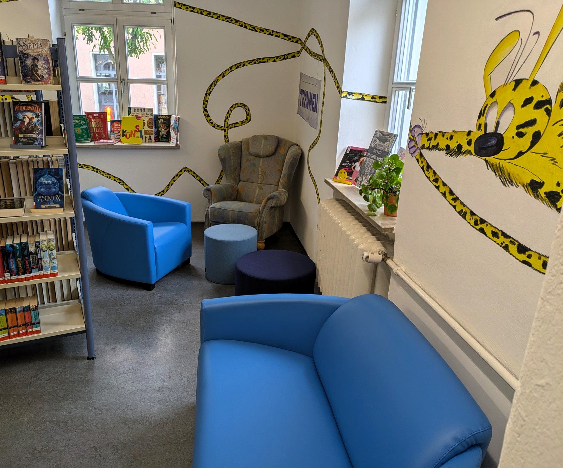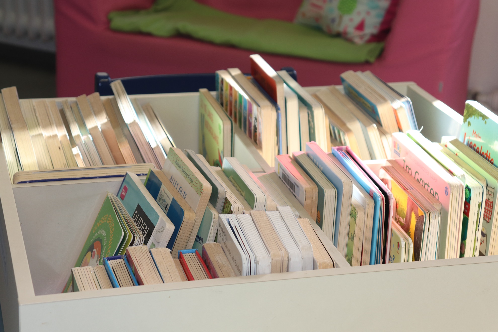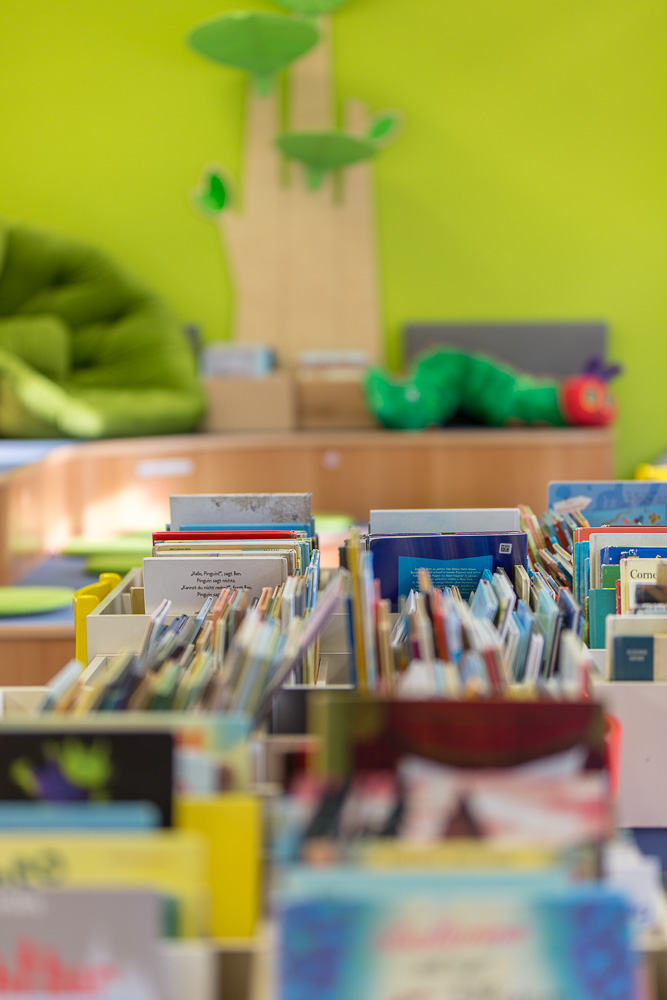 Wir bieten im Erdgeschoss verteilt auf vier großzügige Räume ein umfassendes Medienangebot für Kinder und Familien.